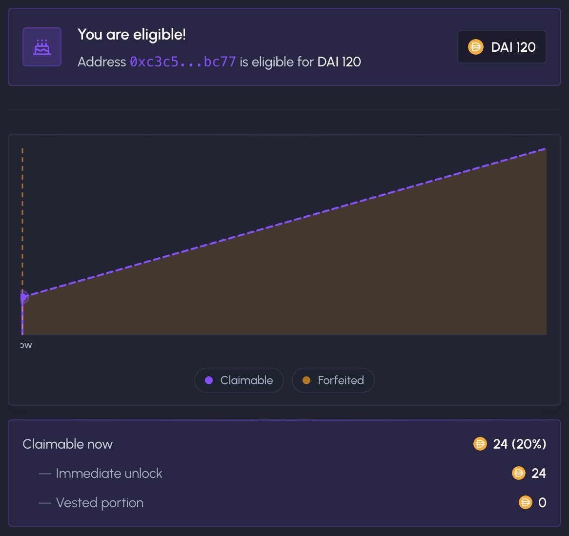 Everything is fully onchain and transparent. Claimed vs. forfeited amounts are visible as onchain stats at any time.