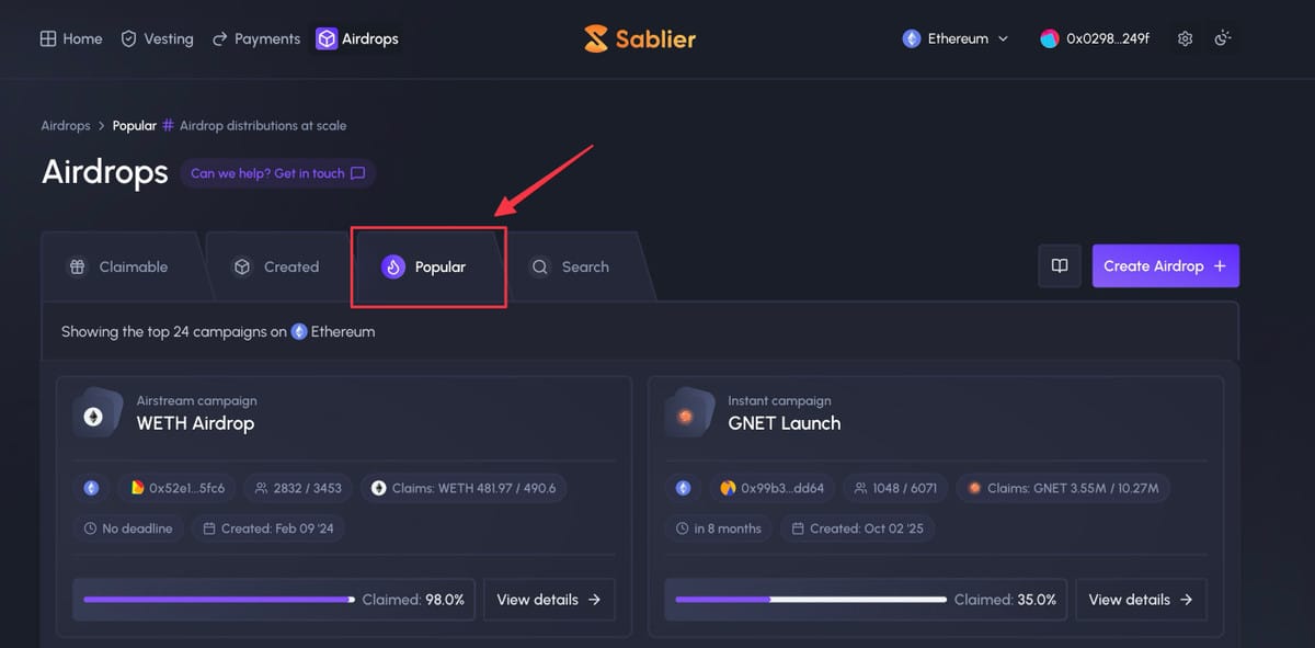 - Popular Airdrops page: Showcases highly active airdrop campaigns.
