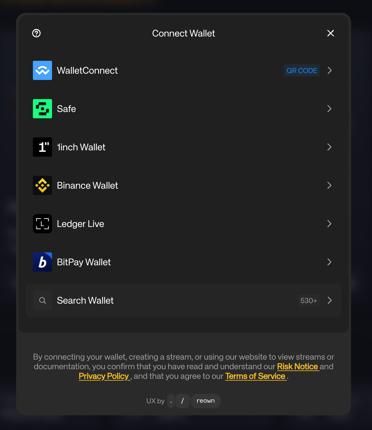 We've migrated from RainbowKit to AppKit, unlocking support for a much wider range of web3 wallets. More wallets means fewer barriers to streaming.